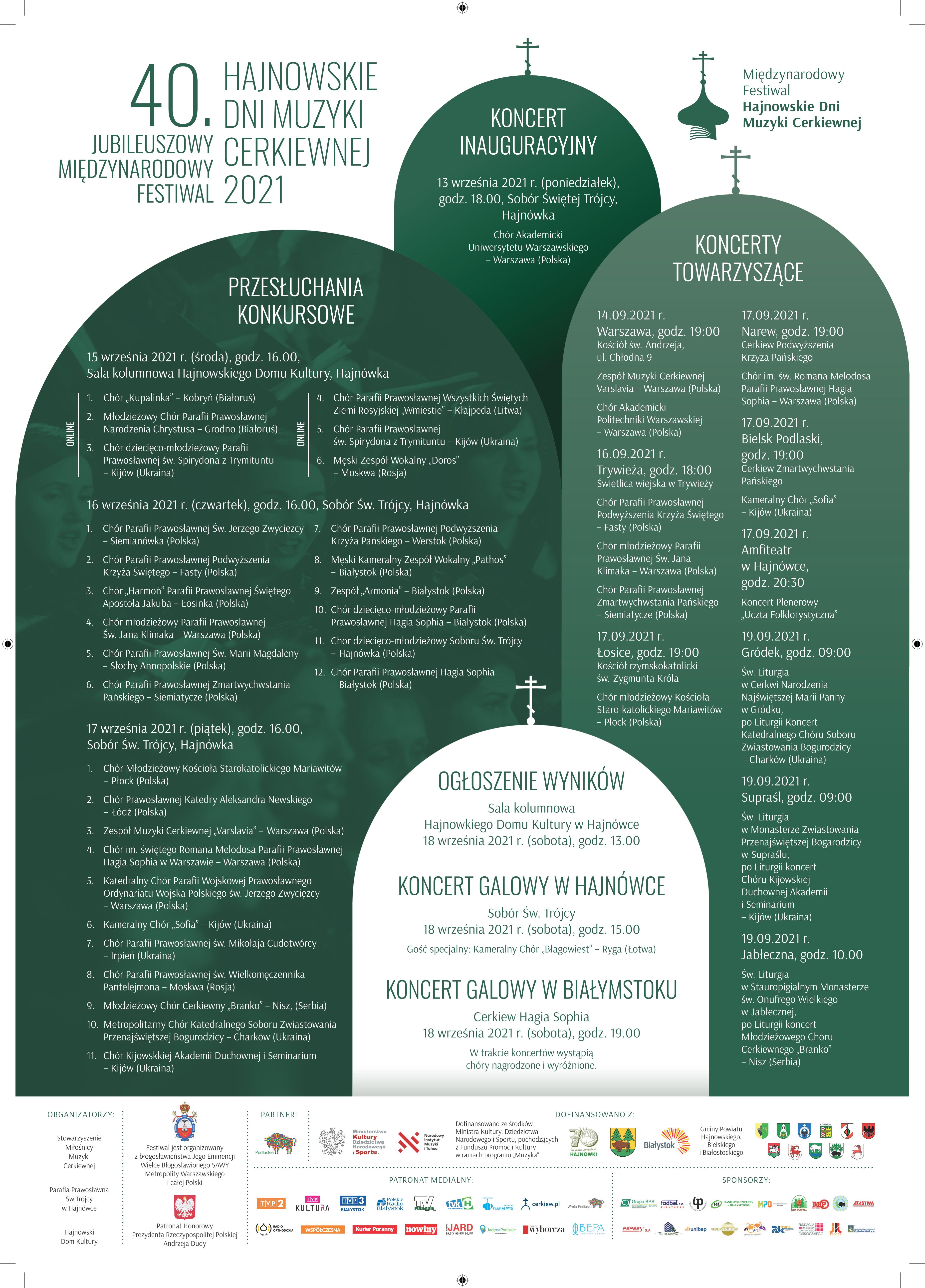 Organizatorzy: Stowarzyszenie Miłośnicy Muzyki Cerkiewnej, Hajnowski Dom Kultury, Parafia pw. św. Trójcy w Hajnówce