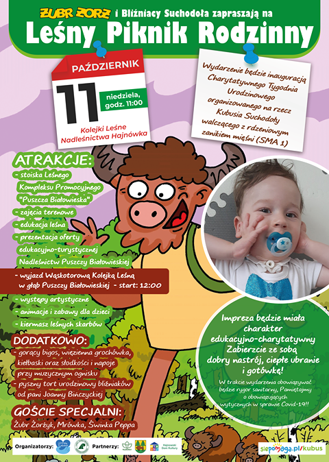 Z wielką przykrością informujemy, iż w związku z wprowadzeniem nowych obostrzeń dotyczących epidemii koronawirusa, jesteśmy zmuszeni odwołać III Leśny Piknik Rodzinny zaplanowany na niedzielę 11.10.2020 r. Za utrudnienia przepraszamy.