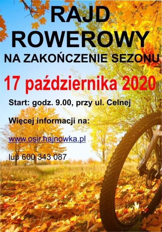 ZAPRASZAMY DO UDZIAŁU W RAJDZIE KOŃCZĄCYM SEZON ROWEROWY!