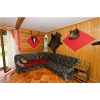 - salon z kominkiem (TV, stół na 8 osób, ławy, rozkładana kanapa),