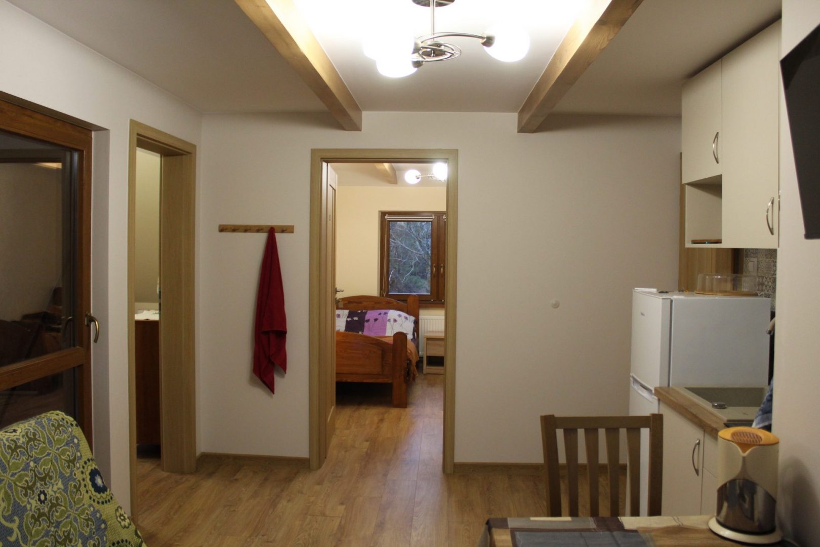 - pokój gościnny 4 osobowy (2 łóżka jednoosobowe i 1 łóżko szerokie dwuosobowe),