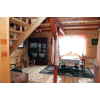 Do dyspozycji mają Państwo ogrodzoną posiadłość z pięknym domkiem budowanym w tradycyjnym stylu z bala z tarasem oraz balkonem. Dom jest dwu-poziomowy. Na piętrze znajdują się dwa pokoje oraz balkon, na dole jest duży salon z kominkiem oraz TV, łazienka oraz kuchnia. Wnętrze domku jest całkowicie wykończone drewnem co daje niespotykany urok temu miejscu.
