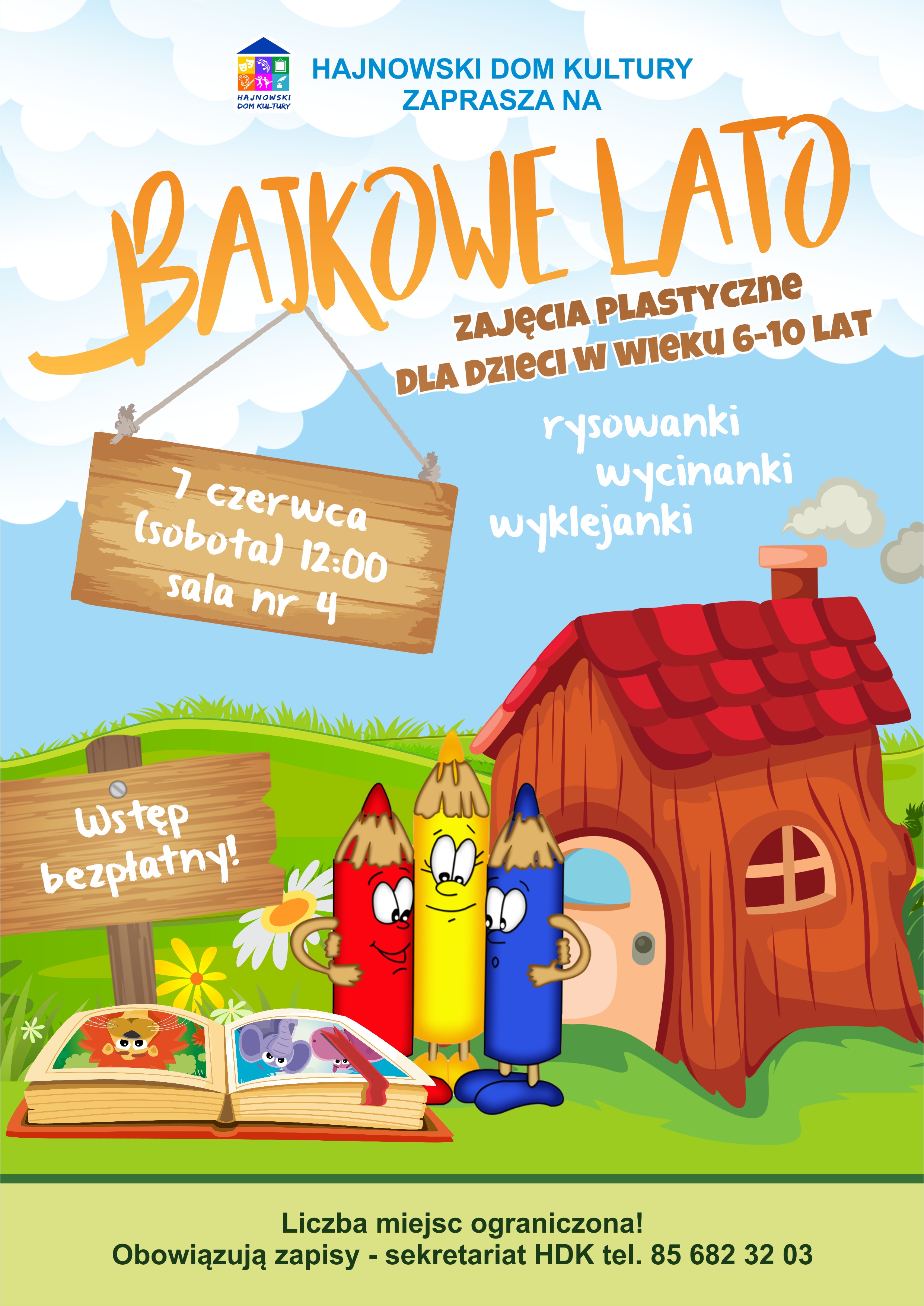 Hajnowski Dom Kultury zaprasza na „Bajkowe Lato”, czyli zajęcia plastyczne (rysowanki, wycinanki, wyklejanki) dla dzieci w wieku 6-10 lat.