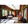 Restauracja podzielona jest na cztery sale: „Myśliwską”, Portretową”, „Dla Zakochanych” oraz reprezentacyjną salę „Główną”, w których łącznie znajduje się 60 miejsc. Naszą specjalnością są dania kuchni polskiej i rosyjskiej. Od 2014r do dyspozycji naszych Gości jest zabytkowy wagon restauracyjny z 1936r zaprojektowany w zakładach Ferdynanda Porsche. Mieści on 48 osób i jest udostępniany na rezerwacje grupowe w okresie od początku maja do końca września. Oferujemy także noclegi w trzech 2-osobowych apartamentach i czterech 2-3 osobowych wagonach-salonkach o niepowtarzalnym klimacie, a także dwa dwupokojowe apartamenty w Domu Dróżnika.