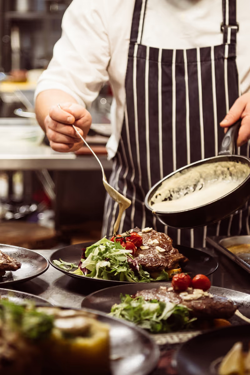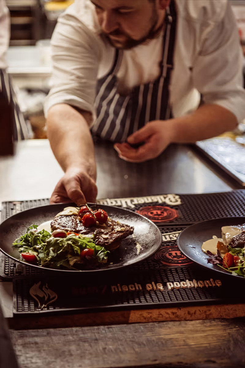 Nakarm ciało i duszę. Posmakuj podlaskich i kresowych dań. Gotujemy tak, jak lubimy jeść – uczciwie, z sercem i z szacunkiem do lokalnych produktów. W naszej restauracji znajdziesz dania kuchni podlaskiej i kresowej, dziczyznę z pobliskich lasów, sezonowe warzywa, aromatyczne zupy i własnoręcznie lepione pierogi. Wędliny wędzimy sami. Nie zapominamy o tych, którzy wybierają kuchnię roślinną– mamy również podlaskie klasyki w wersji wegetariańskiej. Bojarskie Śniadania to nasza duma. Każdego ranka czeka na Ciebie stół pełen ciepłych, pachnących potraw – wliczony w cenę pobytu.