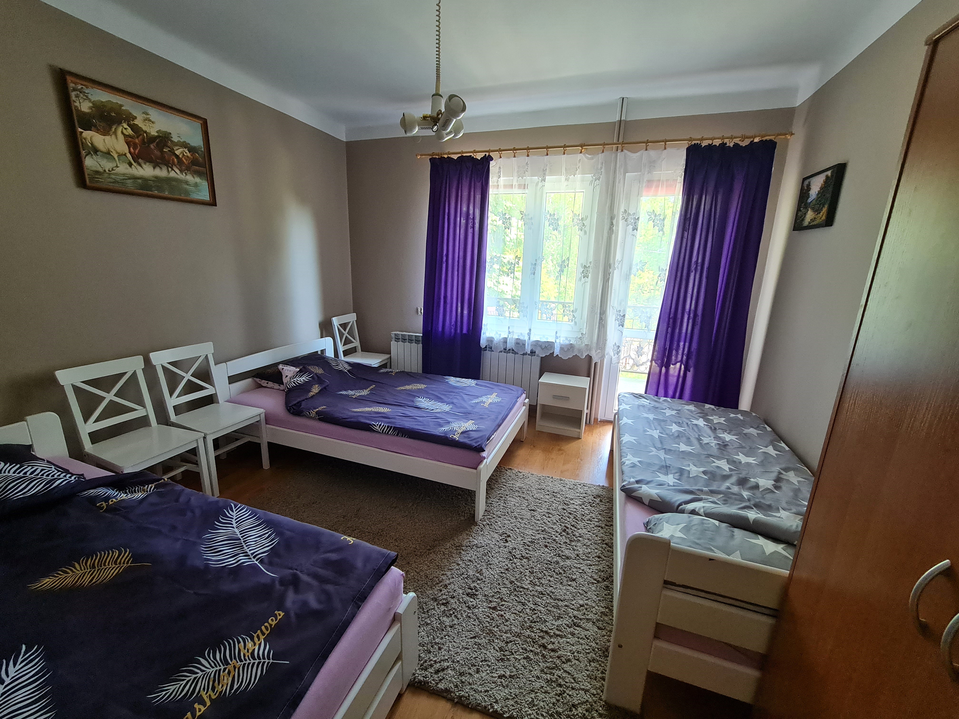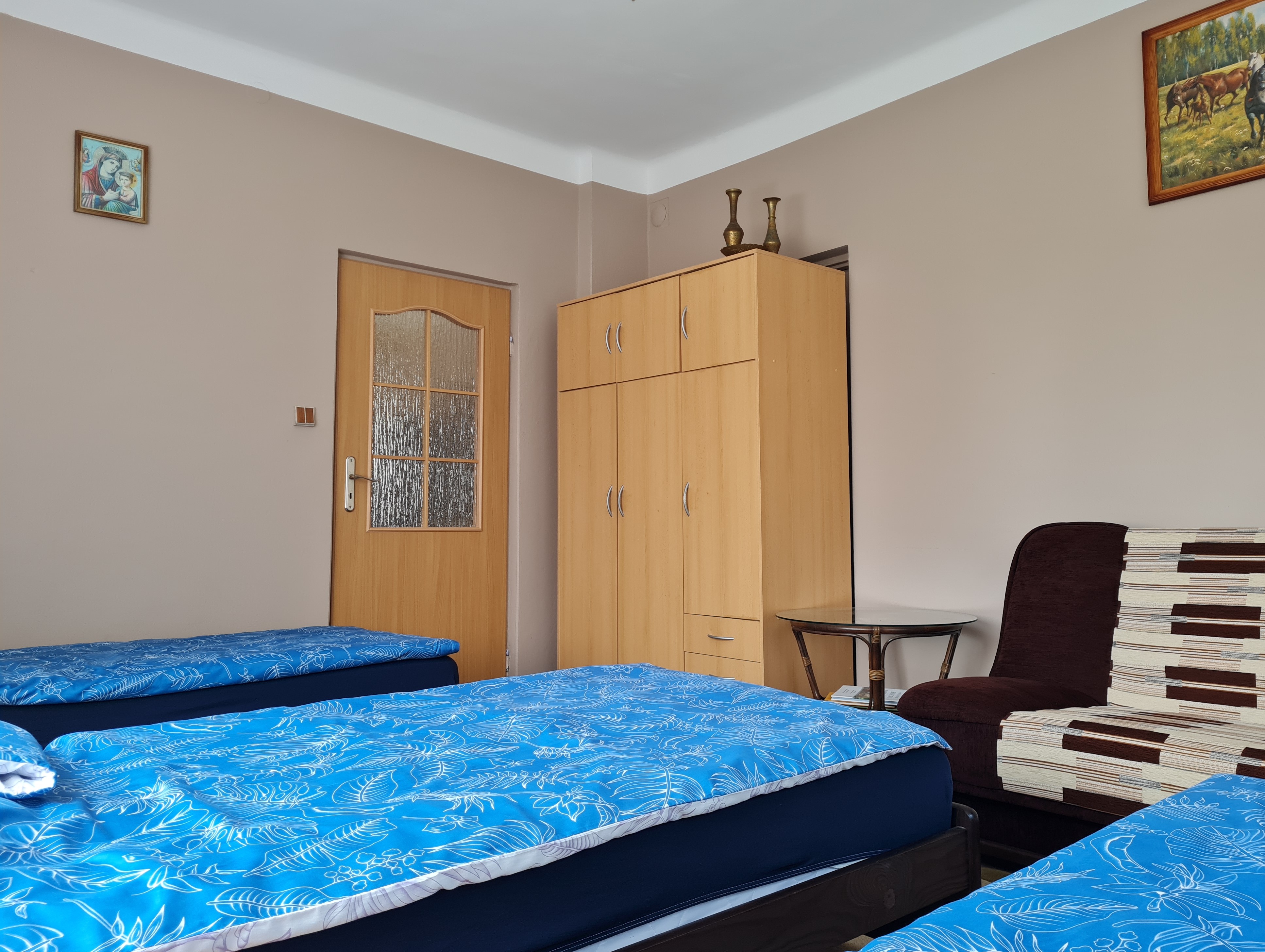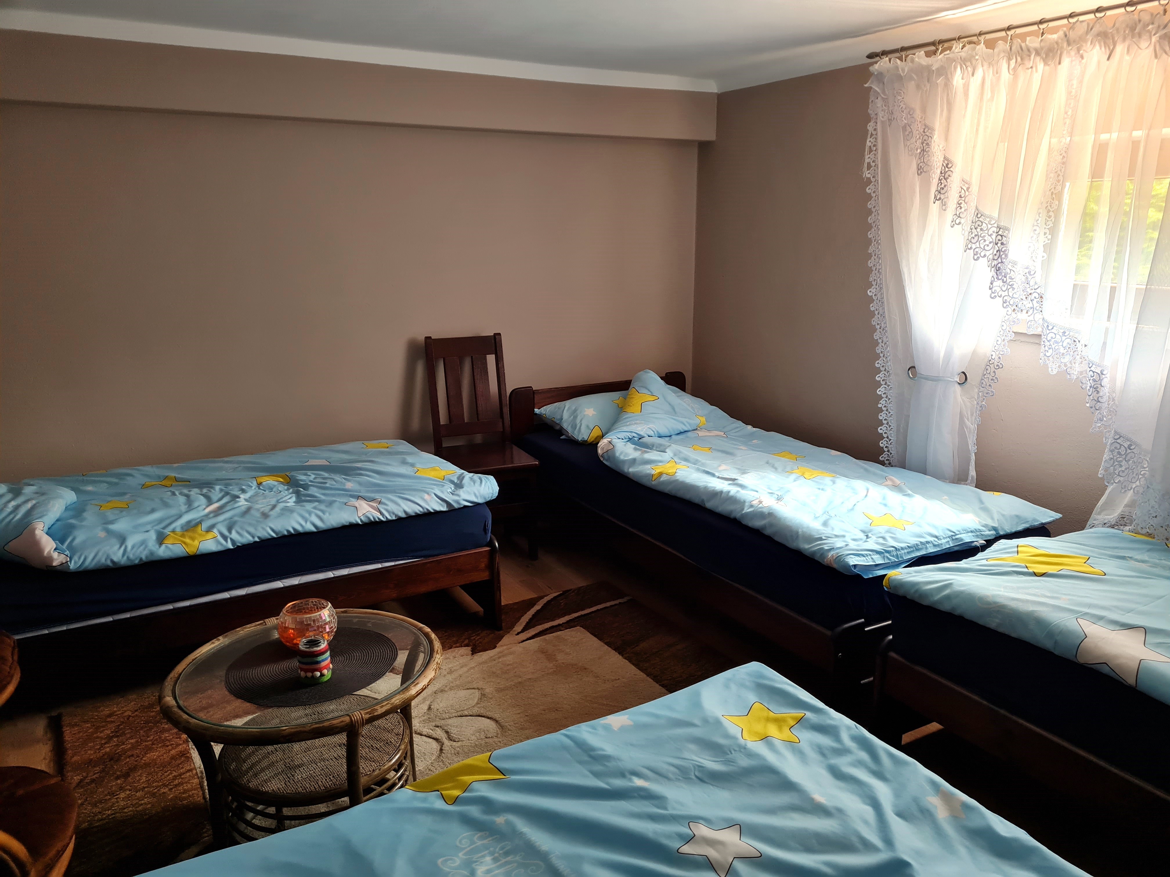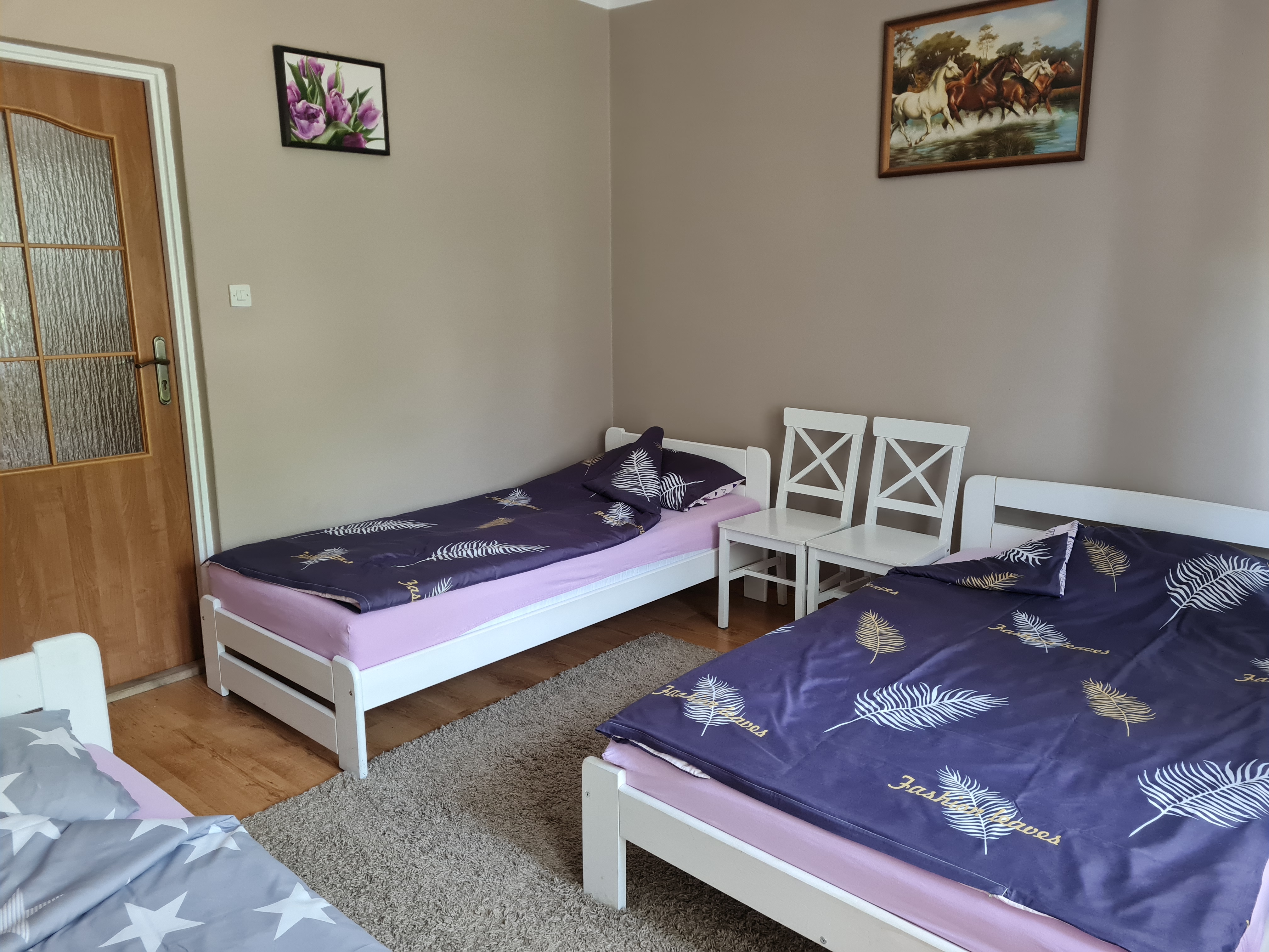 Oferujemy 4 przytulne pokoje z dostępem do wyposażonych kuchni i łazienek, razem trzynaście miejsc noclegowych.