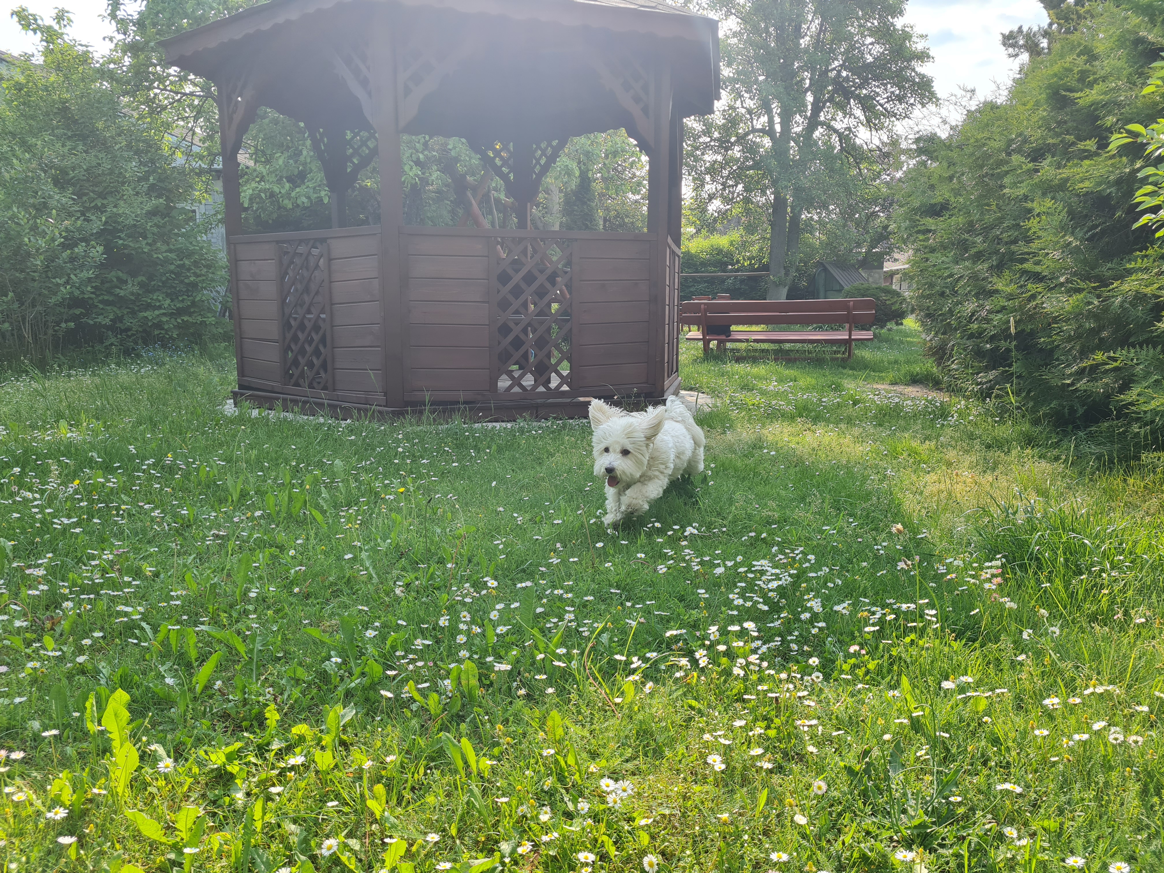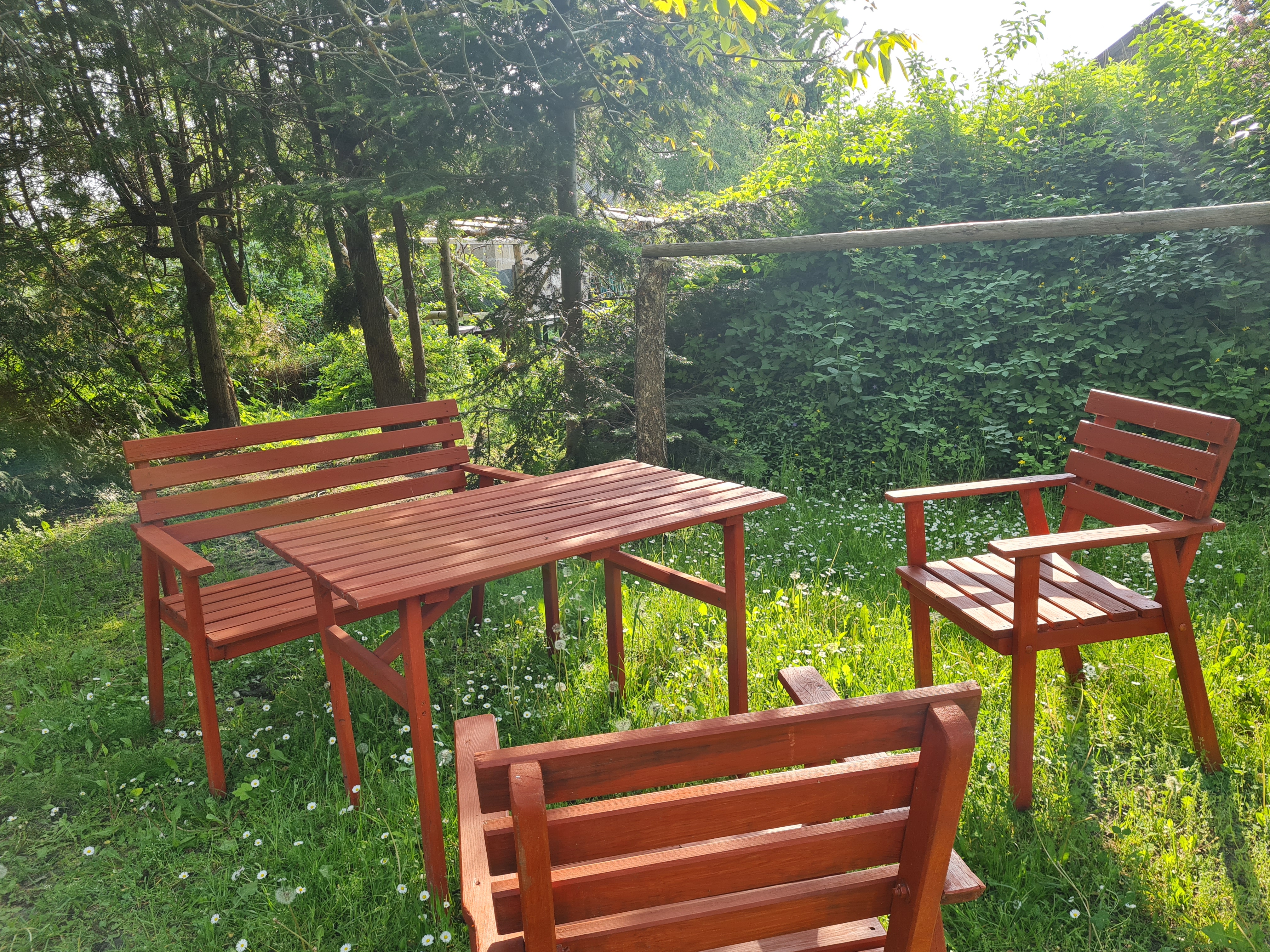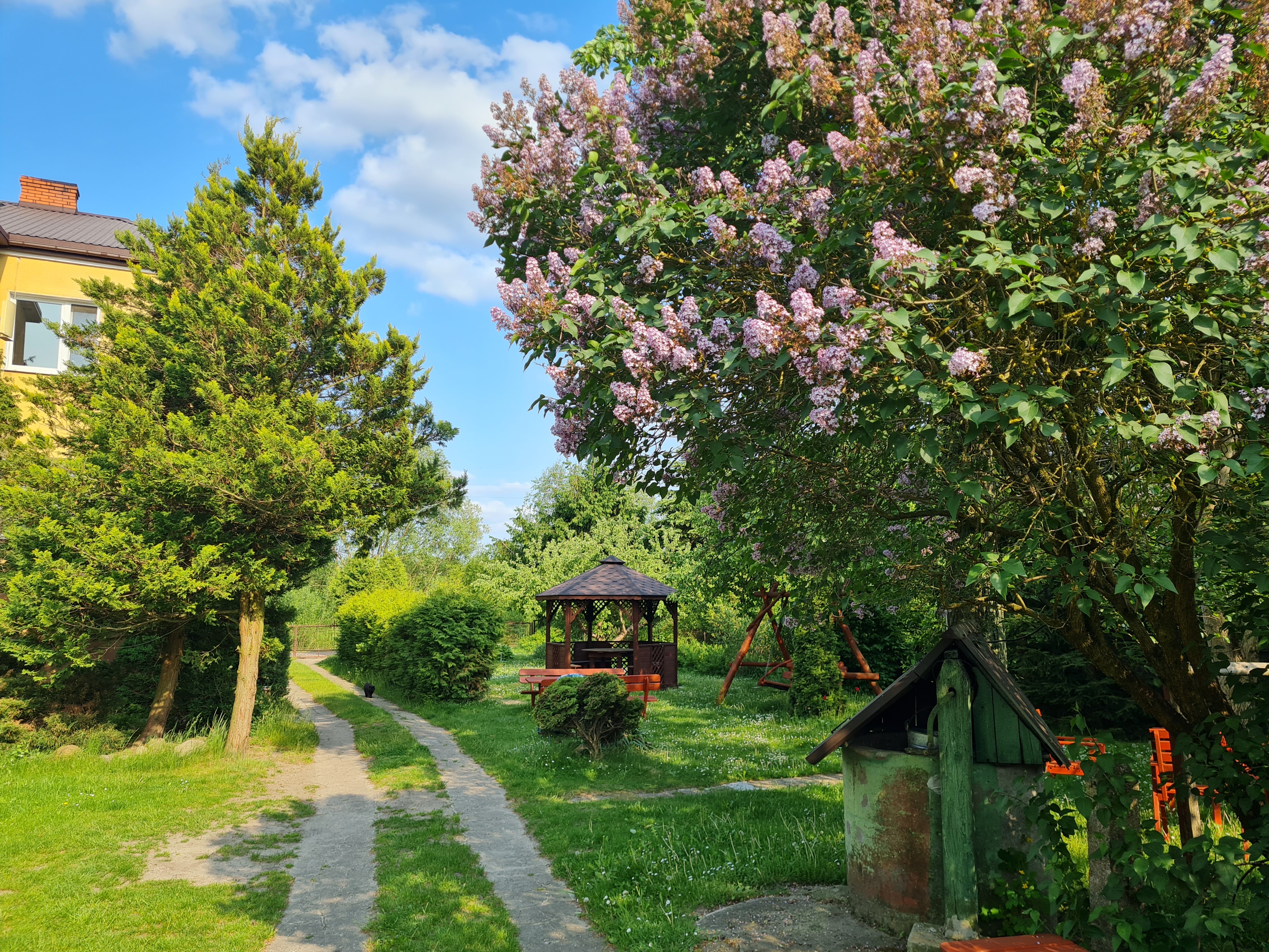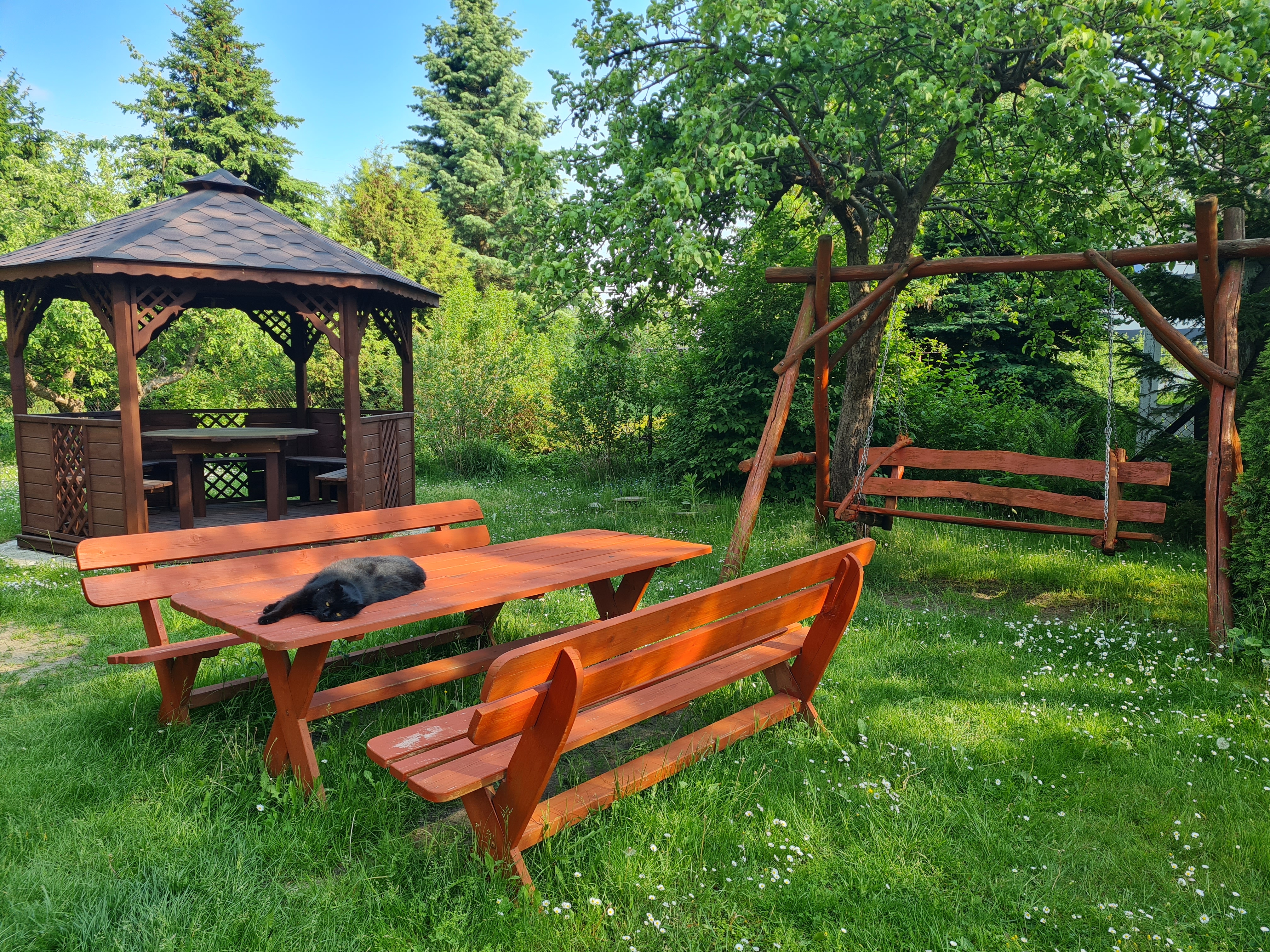 W naszym ogrodzie znajdziecie Państwo strefy przeznaczone do wypoczynku i relaksu oraz dużo zieleni! Do dyspozycji gości pozostają duża huśtawka, altanka, dwa stoły z ławą i krzesłami oraz grill. Rowery gości przechowujemy na parterze naszego domu.