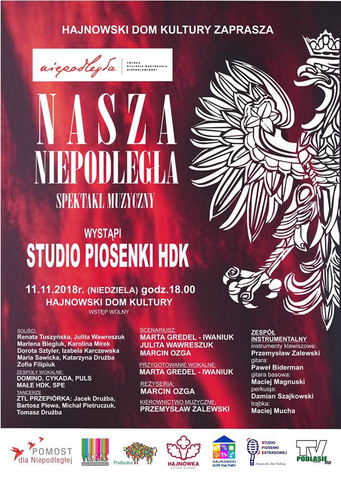 Dofinansowano przez Wojewódzki Ośrodek Animacji Kultury w Białymstoku w ramach programu „POMOST dla Niepodległej”