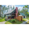 - Domek: parter - pokój dzienny z kuchnią i łazienką i użytkowe poddasze. Domek może pomieścić 4-6 osób.