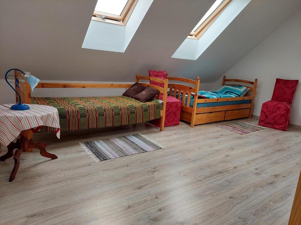 Na terenie Domku przy Puszczy Białowieskiej znajduje się również ogród wraz z placem zabaw.