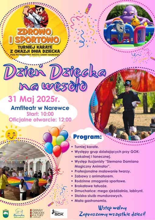 Serdecznie zapraszamy wszystkie dzieci wraz z rodzinami na radosne świętowanie Dnia Dziecka! W programie mnóstwo atrakcji: animacje, dmuchańce, malowanie twarzy, brokatowe tatuaże, występ iluzjonisty, rodzinne zmagania sportowe!