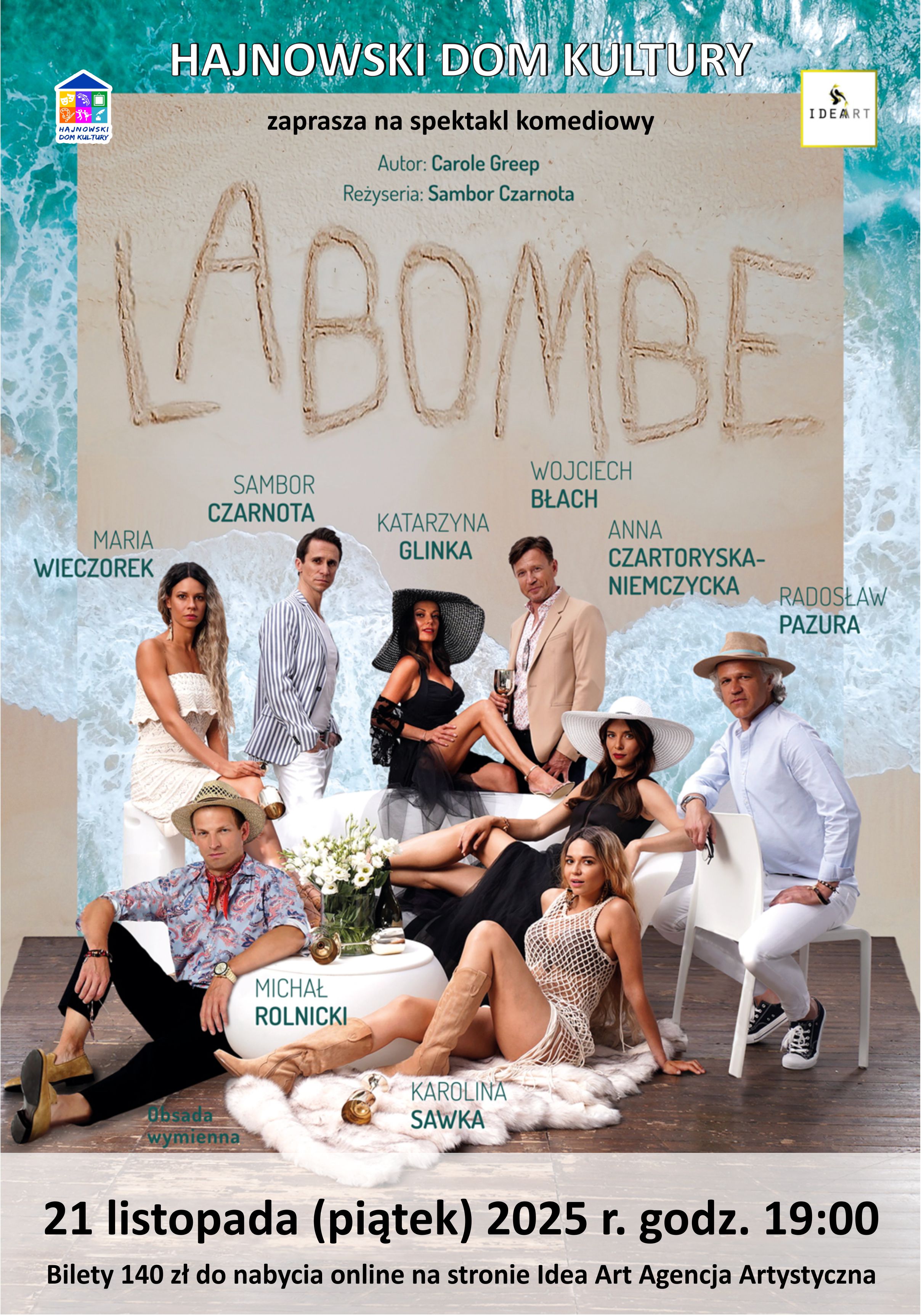 Hajnowski Dom Kultury zaprasza na Spektakl komediowy "La Bombe", który odbędzie się w dniu 21 listopada 2025r. o godz. 19.00 w sali kolumnowej HDK.