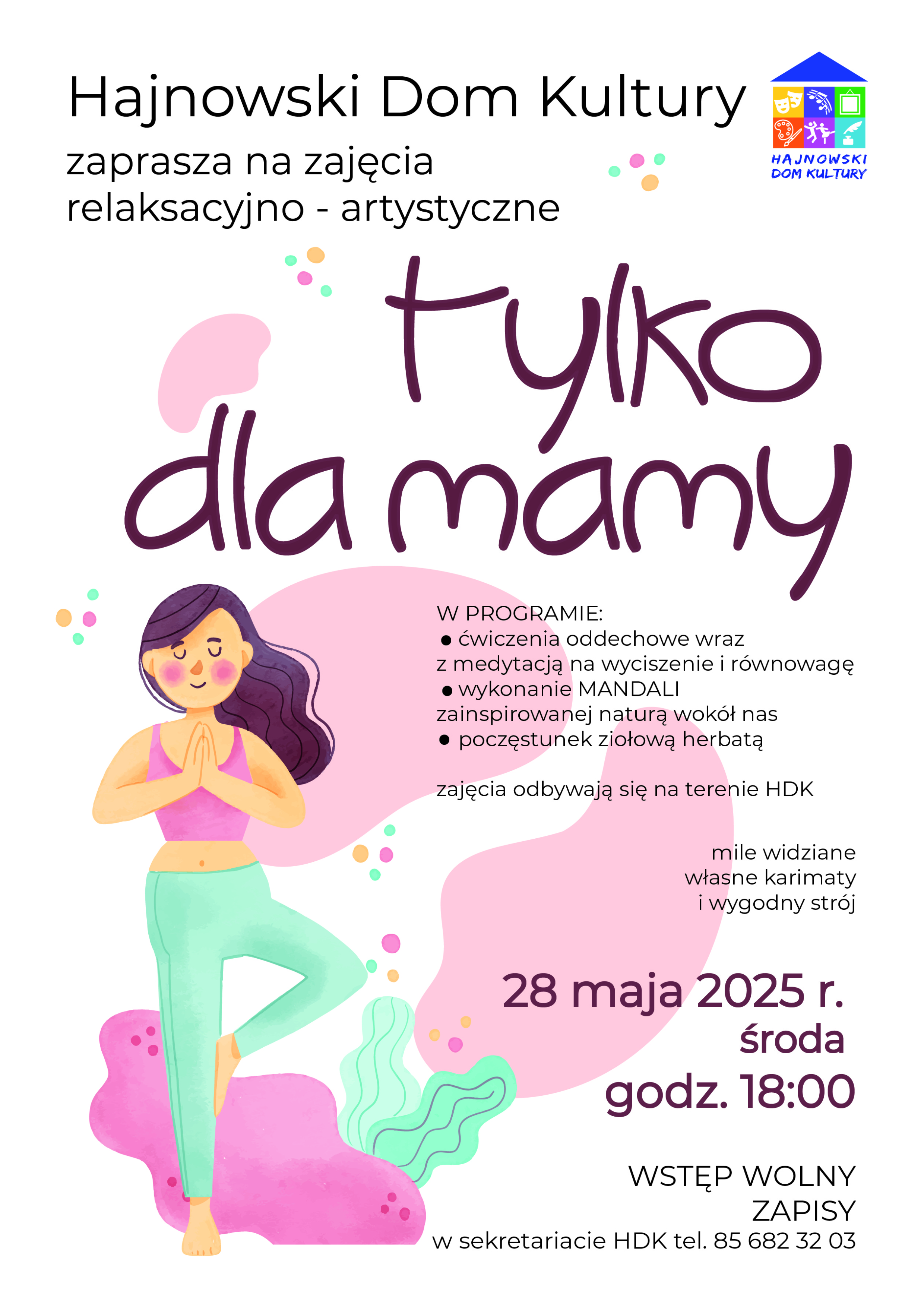 Hajnowski Dom Kultury zaprasza na zajęcia relaksacyjno-artystyczne „Tylko dla mamy”