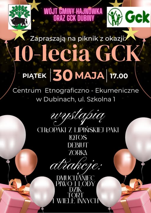 Gminne Centrum Kultury w Dubinach świętuje swoje 10-lecie – dekadę wspólnych wydarzeń kulturalnych, koncertów, imprez, uroczystości.