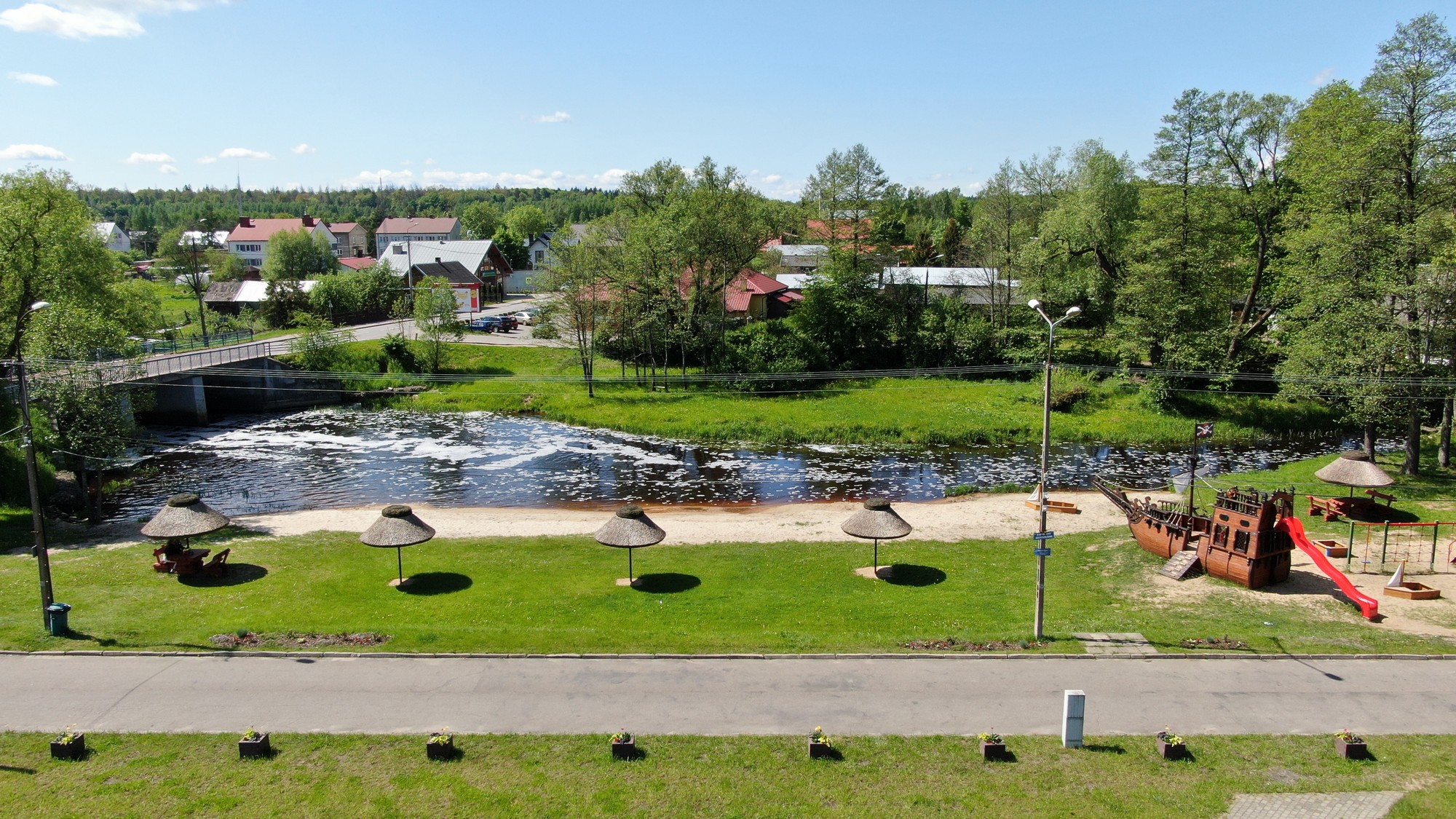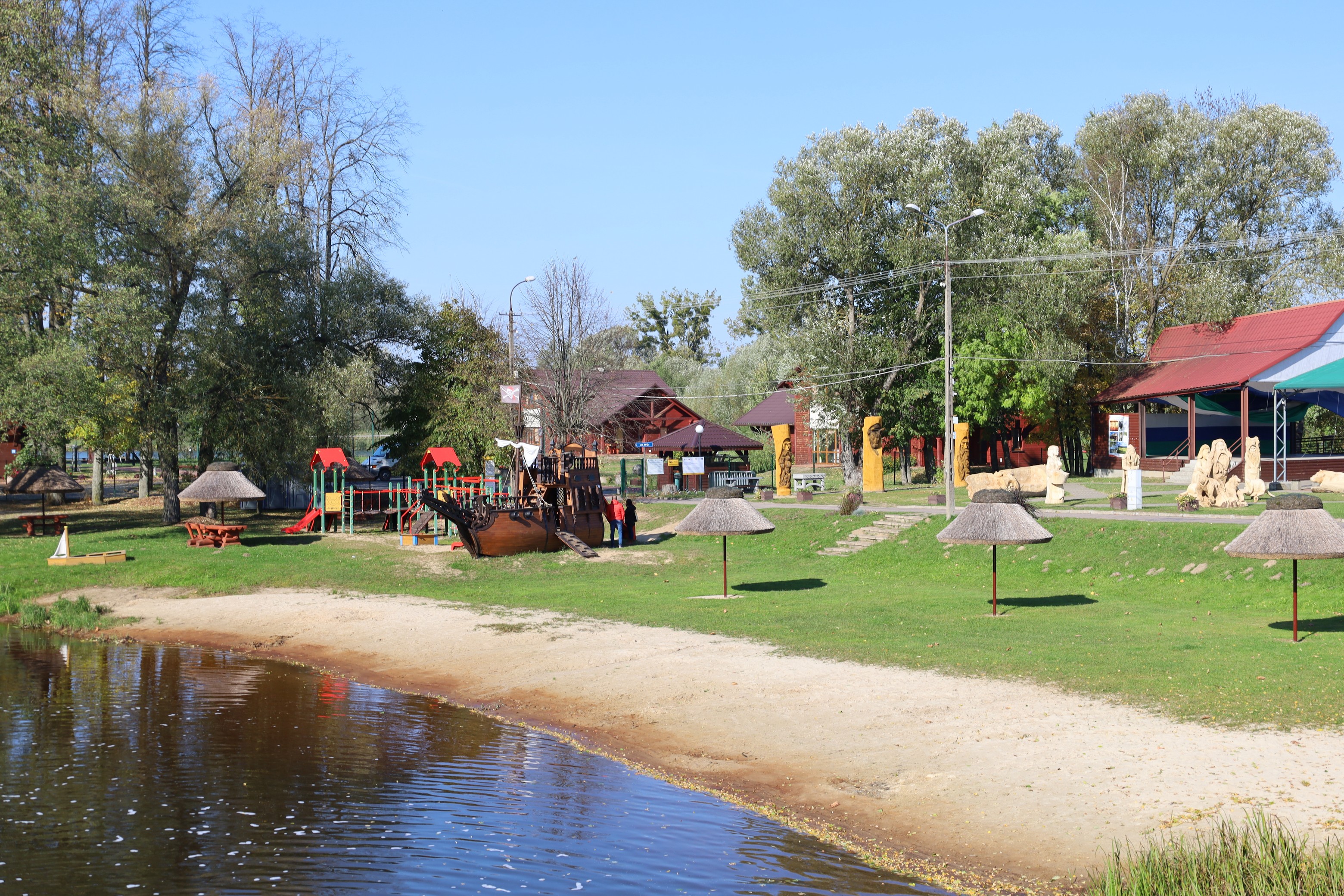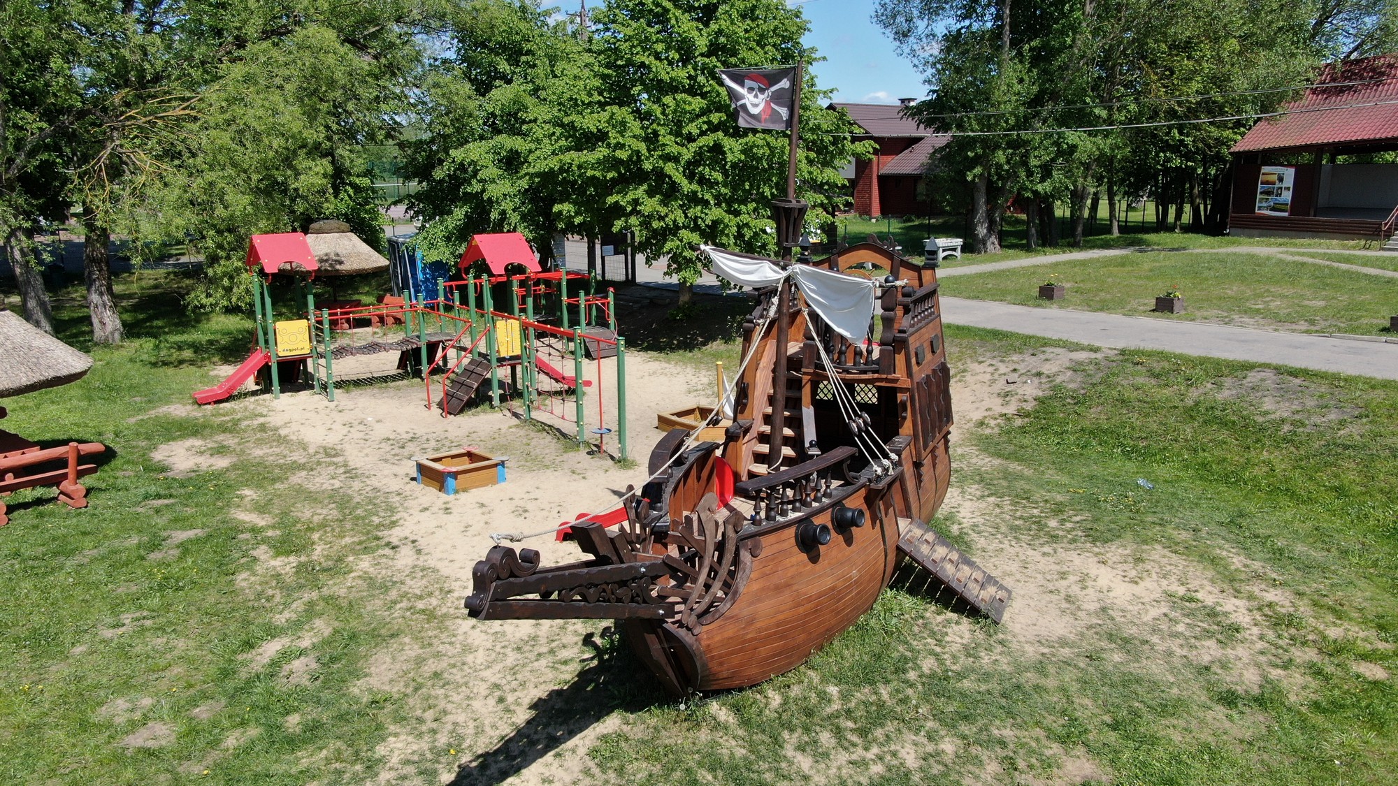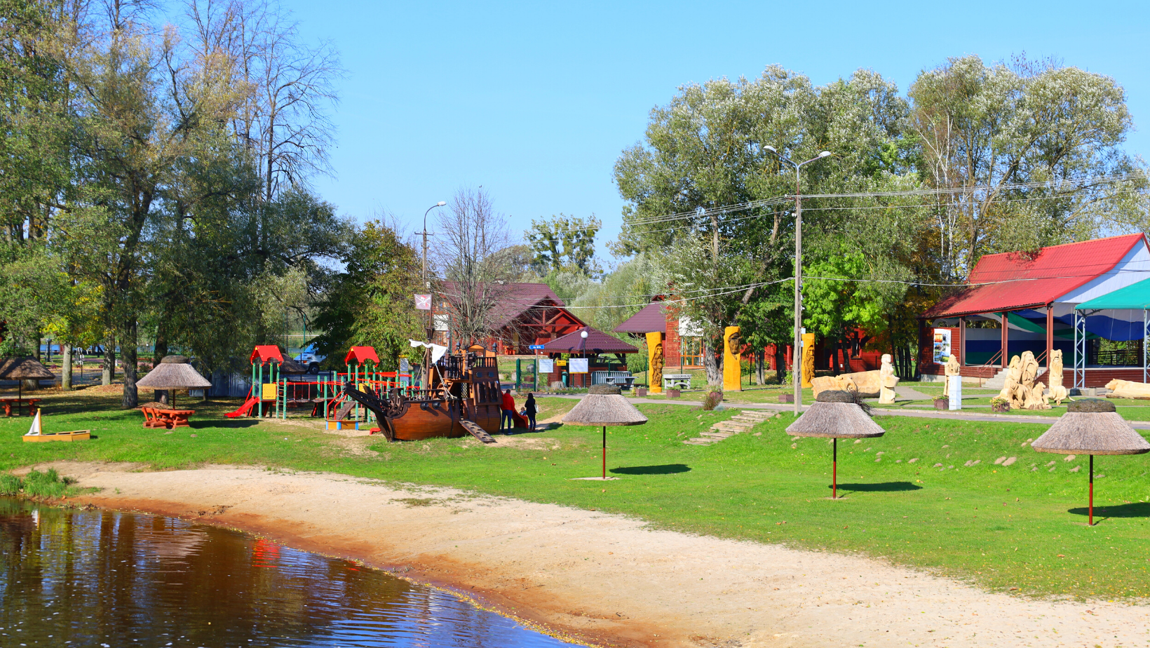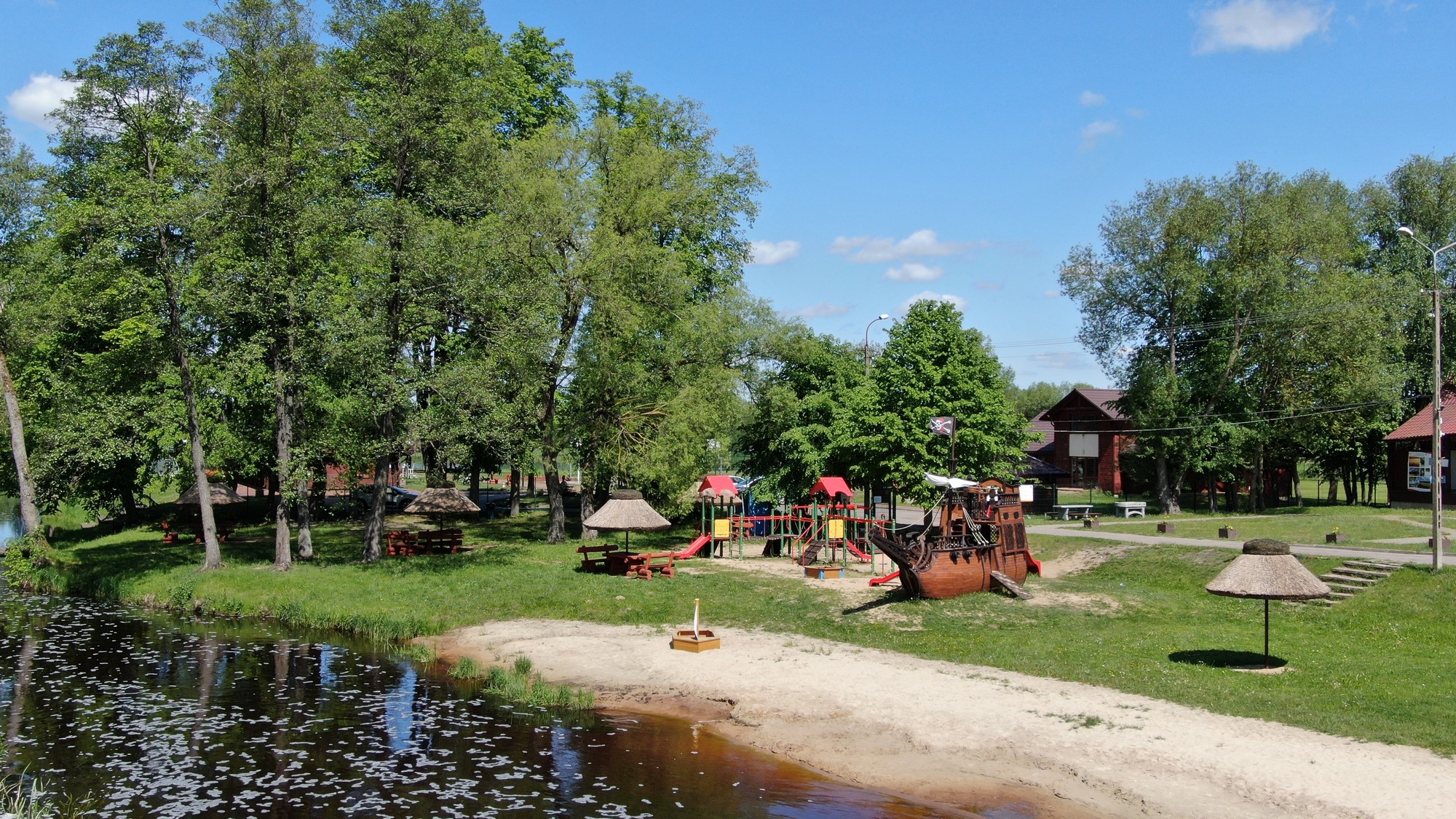 Znajdziecie tu liczne obiekty małej architektury, takie jak funkcjonalny plac zabaw z elementami wspinaczkowymi, ślizgowymi czy piaskownicami w kształcie żaglówek. W miejscową przestrzeń wkomponowały się fikuśne ławeczki oraz drewniane stoliki, a także piaszczysta plaża ze słomianymi parasolami, chroniącymi od deszczu czy nadmiernego słońca.